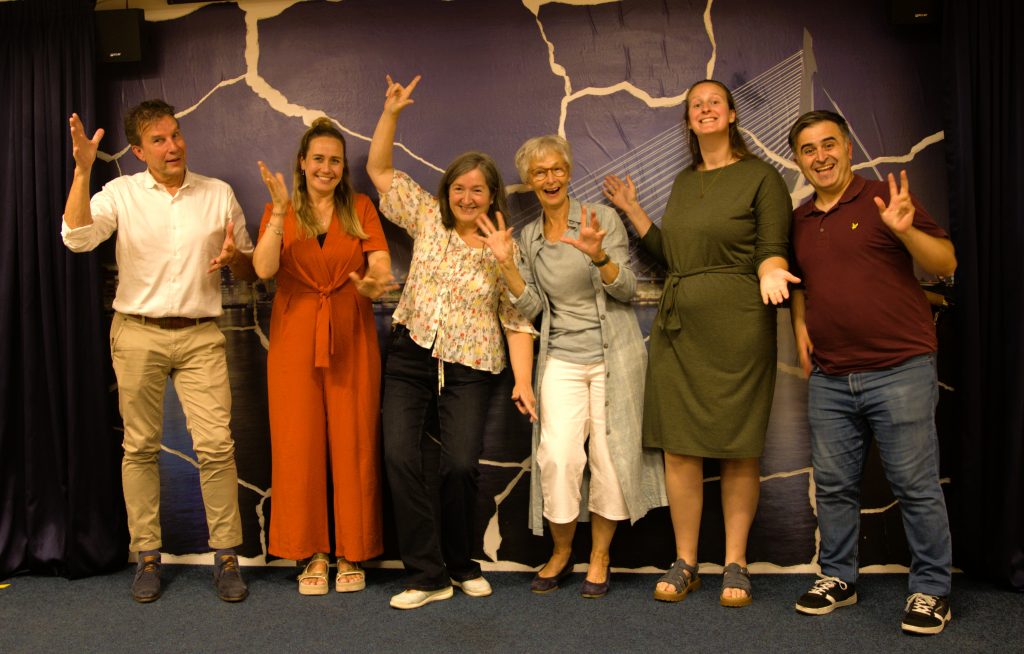 De eerste lezing was van Nienke Fluitman. Dit ging over Gebarentaal in elk klaslokaal. Een project om iedereen in contact te komen met NGT en Dovencultuur. https://www.gebarentaalinelkklaslokaal.nl/